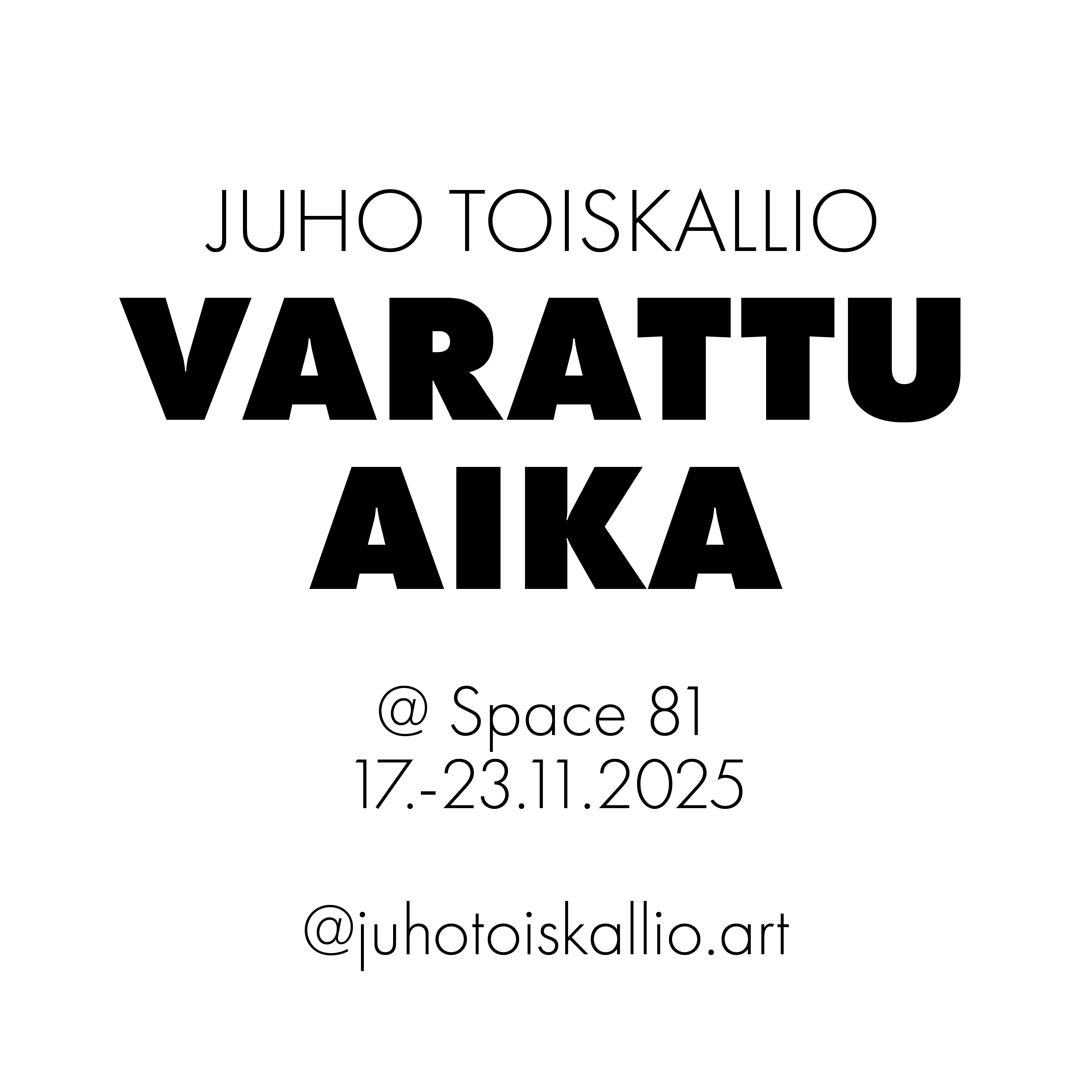 Juho Toiskallio hengittää ja antautuu tyhjälle näyttelytilalle, työskentelee tilassa ja ympäristössä ja pitää näyttelyn Space 81:ssa 17.-23.11.2025.