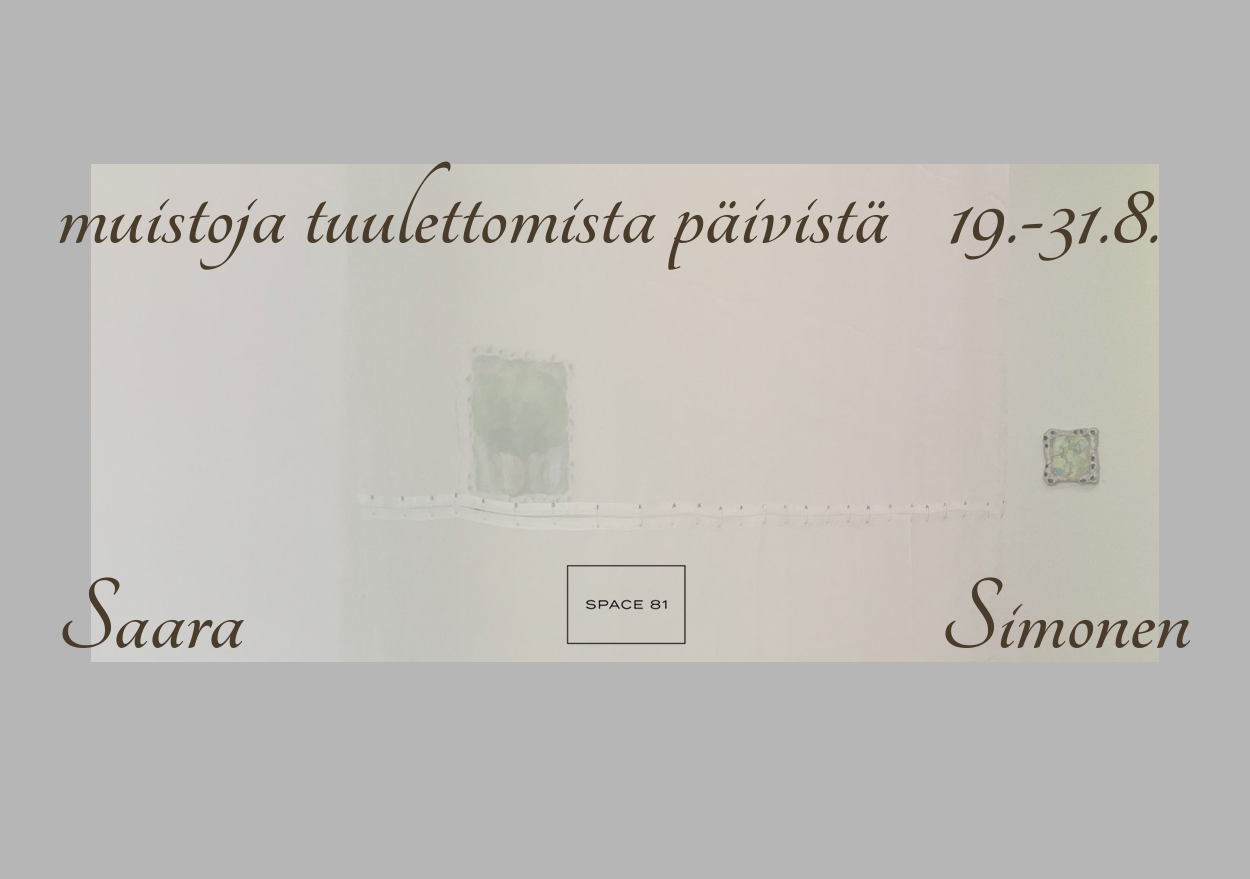 Työskentelen Space 81:ssa ja ympäristössä maanantaista perjantaihin. Olet tervetullut tapaamaan ja keskustelemaan kanssani arkiaamuisin ja iltapäivisin ti-to klo 9-10 ja 17-18. Perjantaina pyrin avaamaan näyttelyn työskentelyn tuloksista. Avajaiset toivottavasti perjantaina 21.11. klo 18 alkaen ja näyttely avoinna lauantaina ja sunnuntaina klo 12-16.