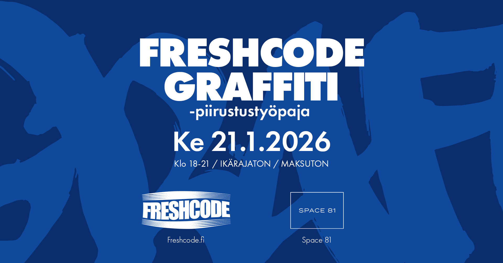 Tervetuloa mukaan piirtämään yhdessä vapaamuotoiseen ja rentoon FRESHCODE GRAFFITI -piirustustyöpajaan Ke 21.1. klo 18-21.